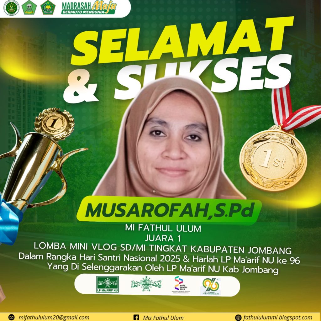 Di bidang media, Bu Saroh dan Tim Media MI Fathul Ulum meraih Juara 1 Lomba Mini Vlog SD/MI Tingkat Kabupaten Jombang, ajang yang diselenggarakan dalam rangka Hari Santri Nasional 2025 sekaligus Harlah LP Ma’arif NU ke-96. Karya mereka berhasil menampilkan kreativitas, inovasi, dan kemampuan digital dalam menyampaikan pesan edukatif dan religius secara menarik.