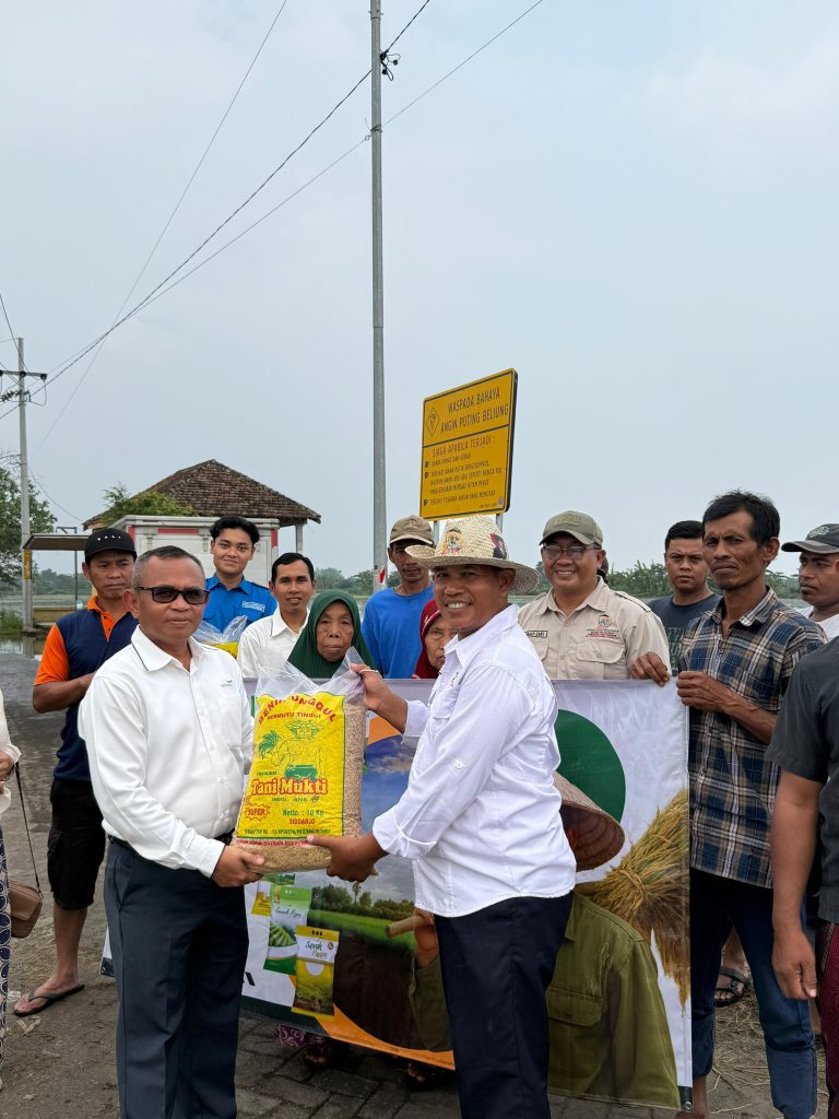 Tani Merdeka Indonesia Pasuruan Raya bersama PT Wilmar Padi Indonesia Salurkan Bantuan Benih Padi untuk Petani Terdampak Banjir di Kedungringin Tengah, Beji