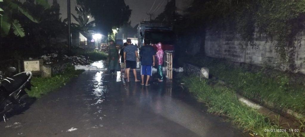 Gempol, suarabangilmedia.com – Luapan air yang terjadi akibat intensitas hujan tinggi memicu banjir darurat di Dusun Kebonsari RT 01 RW 08, Desa Legok, Kecamatan Gempol, pada Jumat, 9 Januari 2026. Menghadapi kondisi tersebut, warga Dusun Kebonsari menunjukkan solidaritas dan kepedulian tinggi dengan melakukan gotong royong membangun bendungan darurat guna menahan dan mengurangi debit air yang terus meluap ke permukiman.