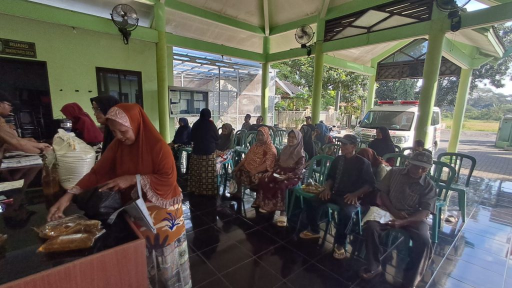 Pembagian bantuan berupa beras sebanyak 20 kilogram dan minyak goreng 4 liter untuk setiap penerima disambut antusias oleh warga. Sejak pagi hari, masyarakat sudah mulai berdatangan ke Balai Desa dengan membawa undangan yang telah dibagikan sebelumnya.